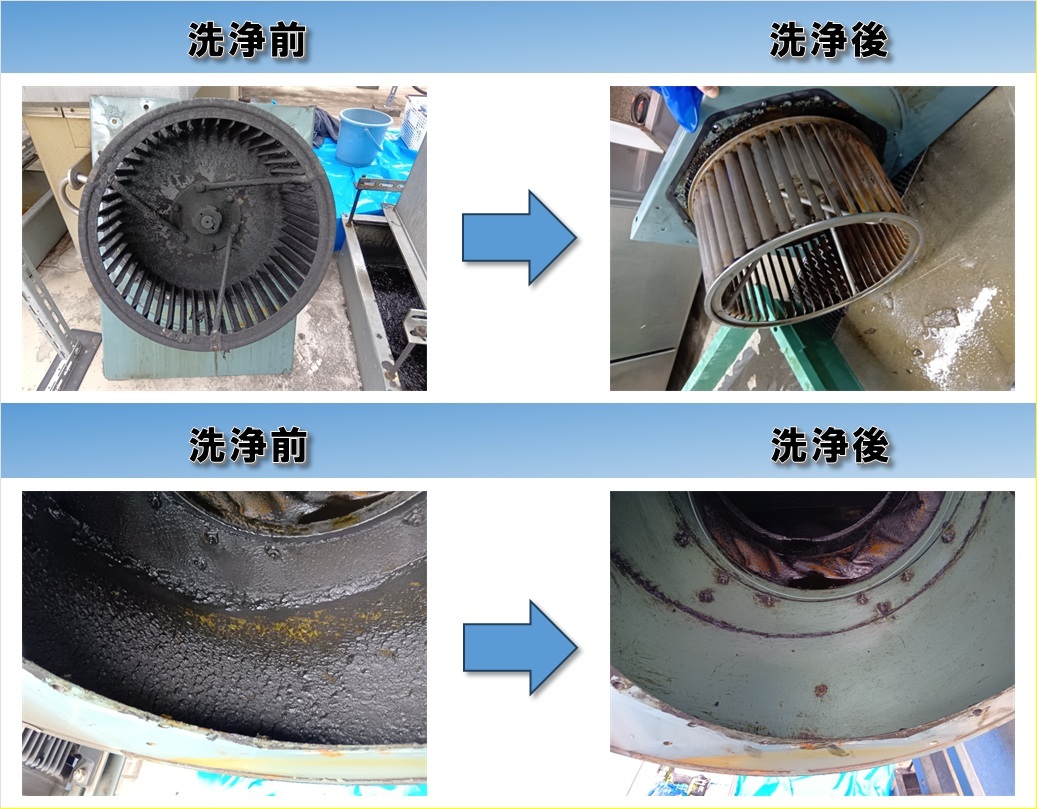 【施工事例】飲食店の排気ファン清掃前後の比較 汚れの状態油による汚れがこびりついていました。 方法・手法分解しアルカリ性洗剤にて洗浄致しました。 効果・結果内部、シロッコファンは綺麗な状態となりました。 所在地 神奈川県横浜市 清掃種類 排気ファンクリーニング換気扇シロッコファン 清掃場所 飲食店居酒屋 汚れの種類 油汚れ 洗剤・機材 アルカリ洗剤分解清掃 排気設備メンテナンスは最安値に挑戦する東京・埼玉の清掃会社ACE(エース)にお任せください!