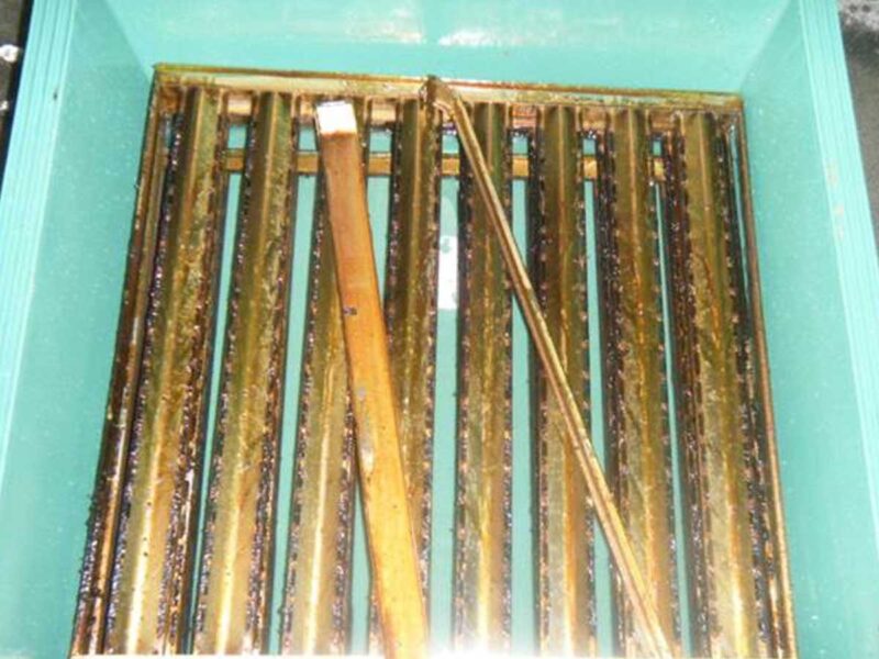 | 汚れの状態 | 調理時に気化した油がVバンク内部に付着し、経年変化で固形汚れとなった強度の油脂の汚れ。 また、廃油のパイプが詰まっているため、液状の油が大量に溜まっている。 |