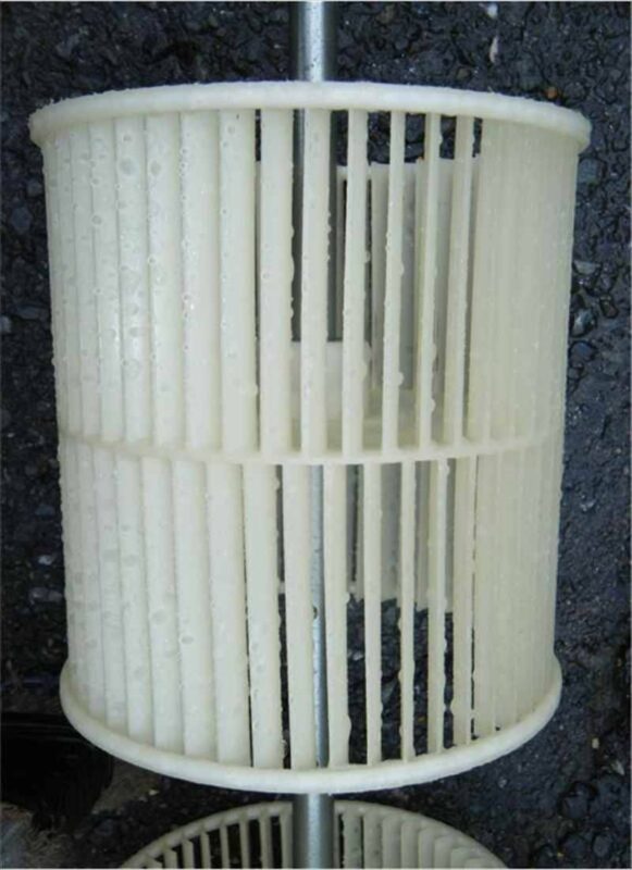 シロッコファンの羽に異物が付着すると、ファンの回転のバランスが崩れてしまい、モーターの軸やベアリングにダメージが及びます。